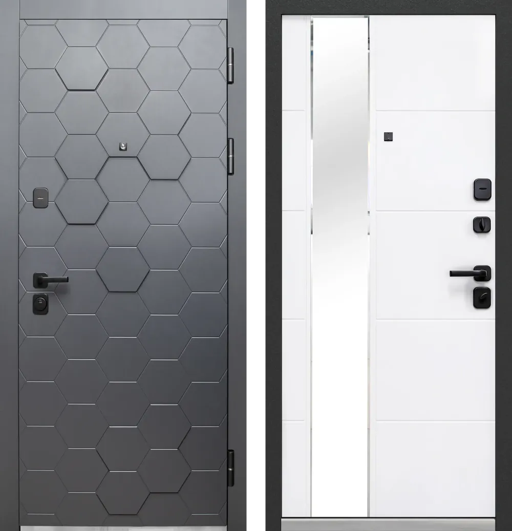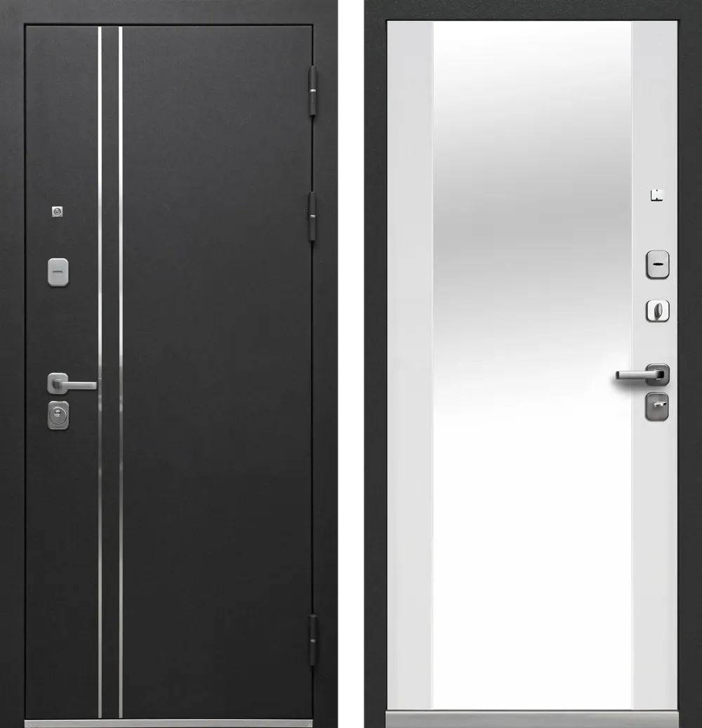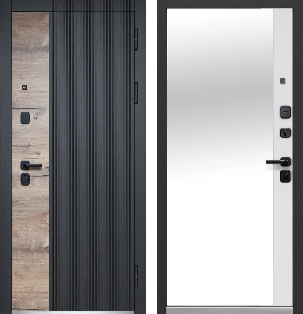 Luxor Дуб Вертикаль Зеркало Сатин черный - Эмалит белый